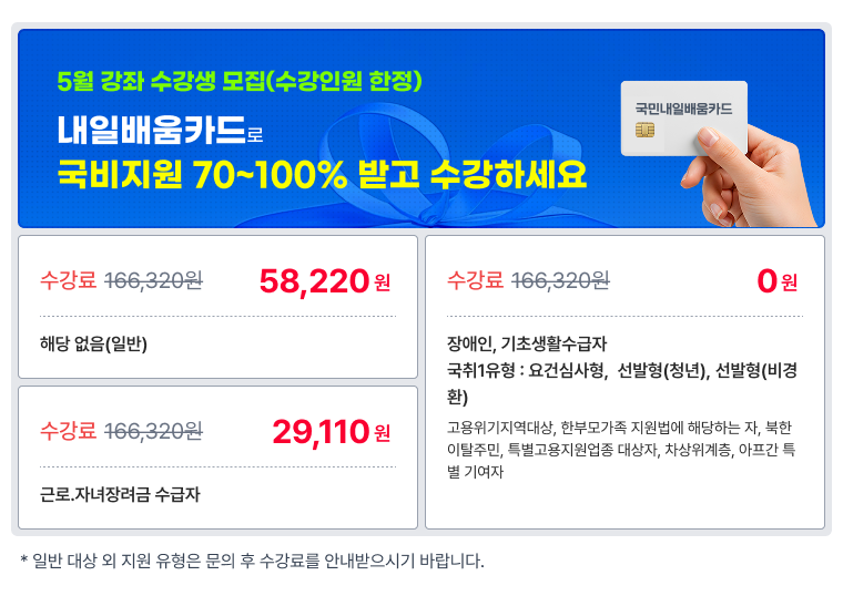 ※ 수료기준은 각 평가항목의 점수가 수료기준 점수 이상이고 총점이 60점 이상이어야 합니다.
